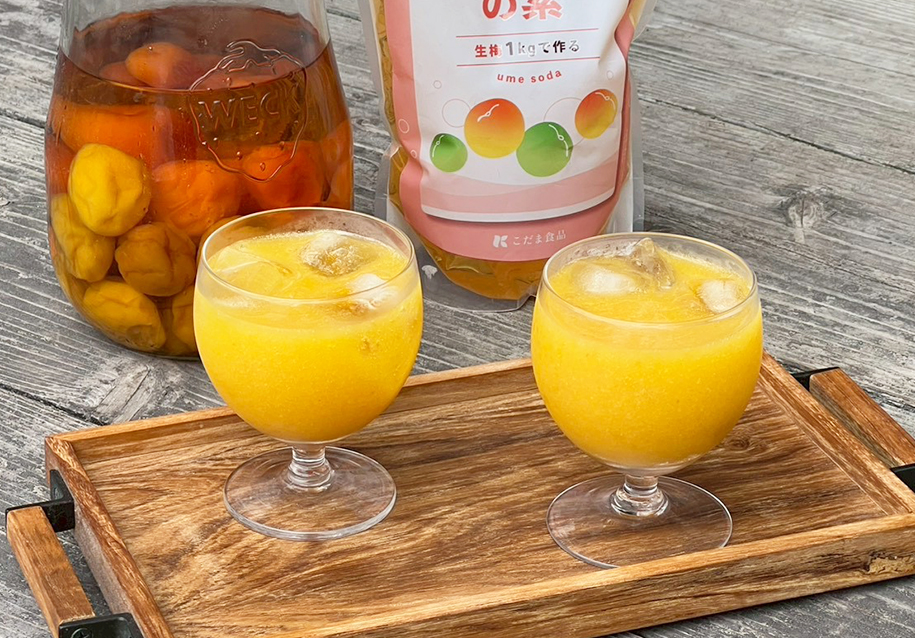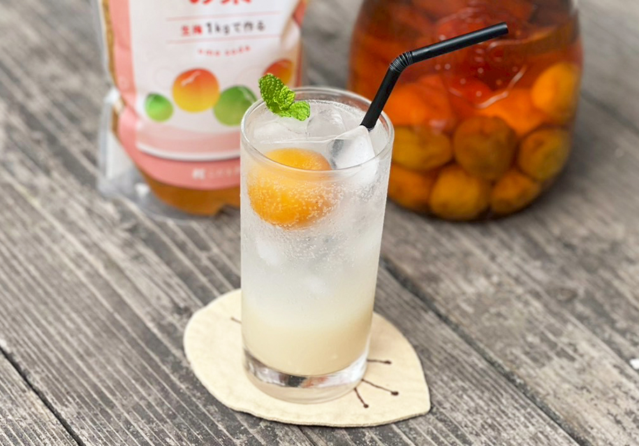 完熟梅を、梅ソーダの素で漬けるだけの簡単梅仕事。シロップを良く冷えた炭酸水やお水で割って、梅の香りが豊かな梅ジュースをお楽しみいただけます。